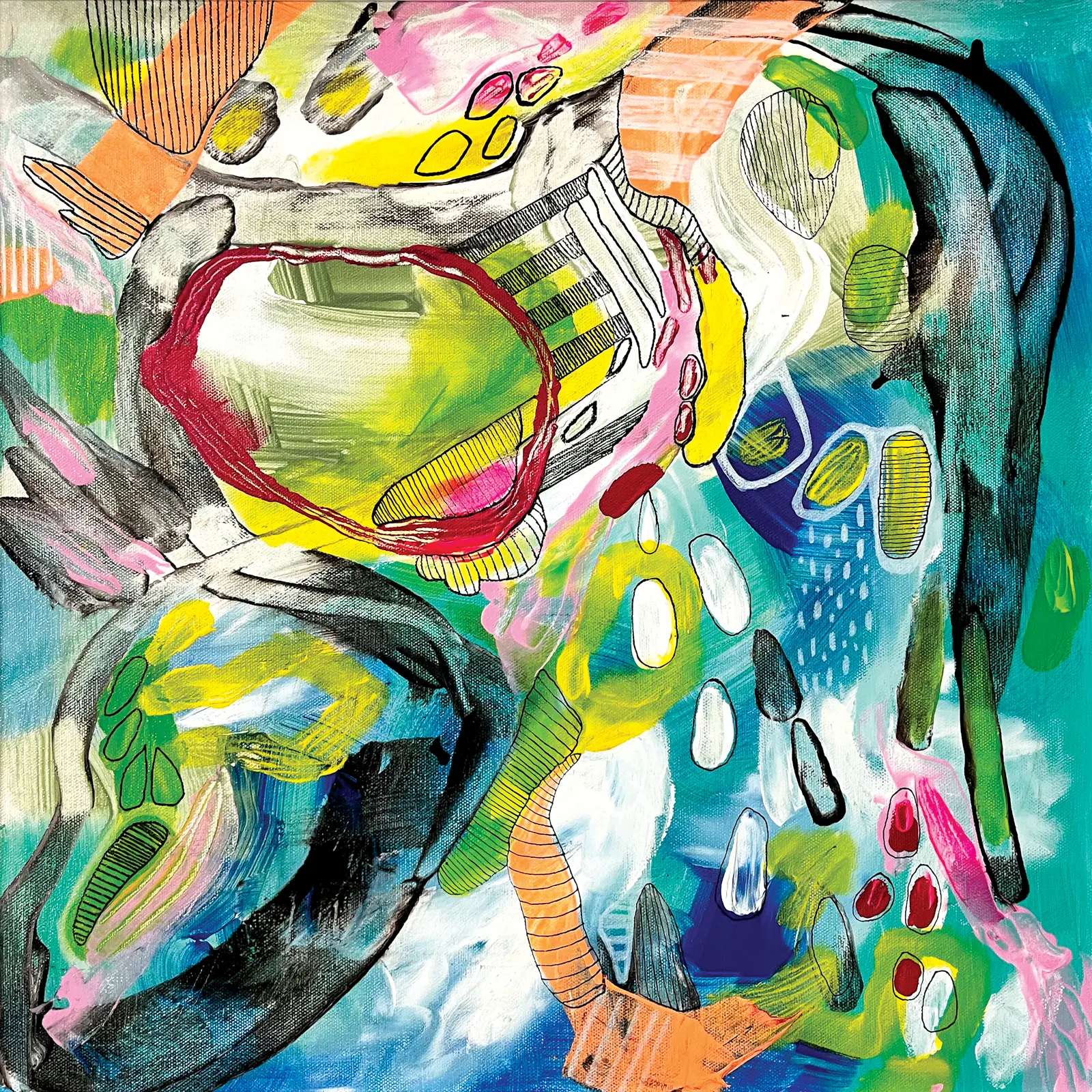 When I'm creating my art, I listen to music that feels good at that moment in time and I let my emotions pour out onto the canvas. Sometimes I listen to the same music for a very long time, while other times, I'll stay in that headspace for just a day.
