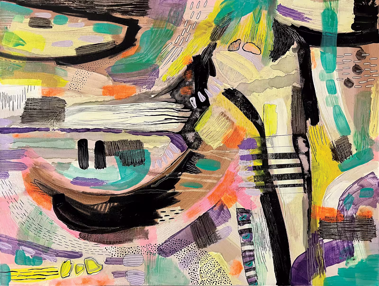 Acrylic with ink on canvas